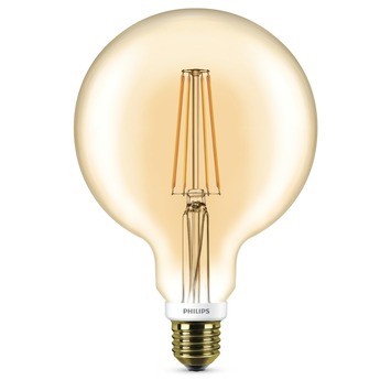 De Philips classic LEDlamp E27 50 watt goud dimbaar is een lichtbron met de LED-technologieën van nu maar met de uitstraling van een authentieke kooldraad lamp. Deze lichtbron gebruikt minder stroom dan traditionele lampen en gaat langer mee. Deze decoratieve lichtbron mag gezien worden en past bij veel soorten armatuur. Deze lamp is te dimmen naar eigen gewenste lichtsterkte. Kortom, de Philips LED-lamp classic is een prettige verlichtingsbron.