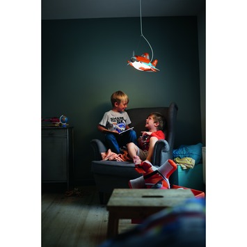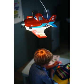 Deze Philips Disney Planes-hanglamp is een leuke decoratieve lamp in de vorm van hoofdpersoon Dusty. De hanglamp beschikt over een energiezuinige geïntegreerde LED dat een warm wit licht uitstraalt. De lamp verlicht de kamer en brengt de verbeelding tot leven. Kortom, De Philips Dinsey Planes lamp is een mooie blikvanger voor in de kinderkamer.