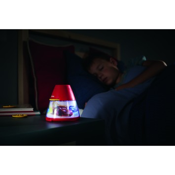Het nachtlampje en de beeldprojector Philips en Disney Cars zullen uw kind versteld doen staan met magische verhalen. Draai een van de filmsporen om kleurrijke Cars-verhalen op het plafond te projecteren, of doe het geruststellende nachtlampje eronder aan. Kortom, de Philips Disney Projectorlamp is een leuke toevoeging aan de kinderkamer.
