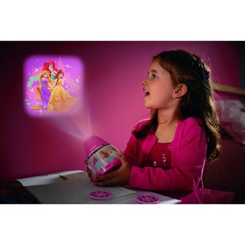 Het nachtlampje en de beeldprojector Philips en Disney Princess zullen uw kind versteld doen staan met magische verhalen. Draai een van de filmsporen om kleurrijke Prinsessen-verhalen op het plafond te projecteren, of doe het geruststellende nachtlampje eronder aan. Kortom, de Philips Disney Projectorlamp is een leuke toevoeging aan de kinderkamer.