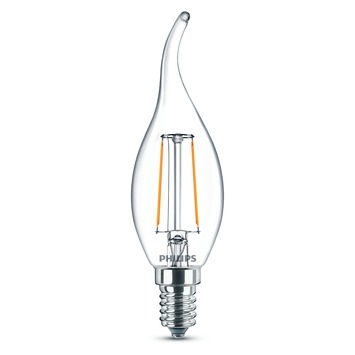 De Philips LED filament met een E14 fitting is een energiezuinig alternatief voor halogeen, de spaarlamp en de gloeilamp. De Philips LED lamp heeft een lichtopbrengst van 250 lumen en een wattage van 2.0 watt. Deze lamp heeft een warm witte lichtkleur met een kleurtemperatuur van 2700 kelvin. Dit product is ideaal om een gezellige en comfortabele sfeer te creëren in de woonkamer. Deze duurzame lamp met een lange levensduur, is een aangename verlichtingsbron voor in het huis.