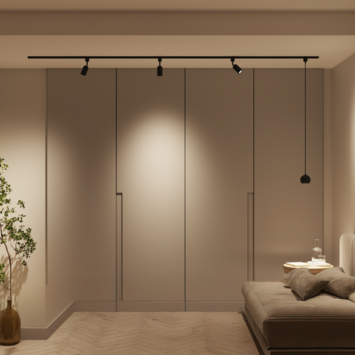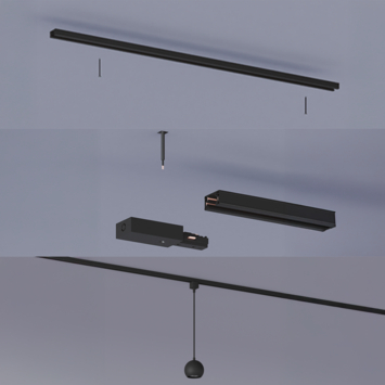 De hanglamp klik je eenvoudig in de rail door de koppeling naar beneden te schuiven en een kwartslag te draaien. Hierdoor kun je de verlichting moeiteloos verplaatsen of aanpassen zonder nieuwe rails te installeren of aan bedrading te knutselen, waardoor het systeem ideaal is voor iedere ruimte.