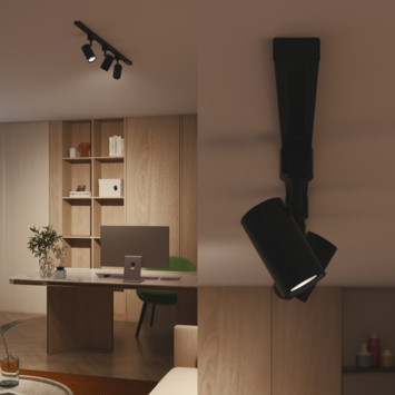 Het EasyLink systeem laat je zelf bepalen hoe lang je verlichting wordt en welke lampsoorten je gebruikt. De spot verplaats je eenvoudig of breid je uit zonder extra bedrading door de koppeling te verschuiven en een kwartslag te draaien. De armatuur wordt geleverd zonder lichtbron, zodat je kiest voor een GU10 LED in de gewenste kleurtemperatuur, een UltraEfficient LED of een SceneSwitch lamp. Voor extra functies kun je ook slimme verlichting toevoegen, waarmee je dimt, timers instelt en meerdere lichtstanden gebruikt via de app.