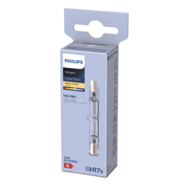De Philips EcoHalo staaflamp R7s 120W warm wit is een halogeenbuis geschikt voor een R7s fitting. De buis heeft een vermogen van 120 watt, hiermee heeft de spot een lichtopbrengst van 2110 lumen. De halogeenbuis straalt een fel helder licht uit, hierdoor hoeven uw ogen zich minder in te spannen, wat de concentratie verbetert. Doordat de lamp dimbaar is kunt jeechter ook kiezen voor een zachte gloed. Tevens is deze halogeenbuis direct op volledige lichtsterkte.