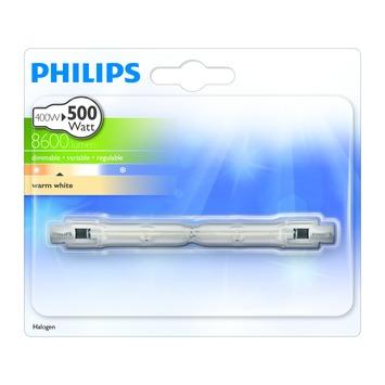 De Philips EcoHalo staaflamp R7s 400W helder is een halogeenbuis geschikt voor een R7s fitting. De buis heeft een vermogen van 400 watt, hiermee heeft de spot een lichtopbrengst van 8500 lumen. De halogeenbuis straalt een fel helder licht uit, hierdoor hoeven uw ogen zich minder in te spannen, wat de concentratie verbetert. Doordat de lamp dimbaar is kunt jeechter ook kiezen voor een zachte gloed. Tevens is deze staaflamp direct op volledige lichtsterkte.