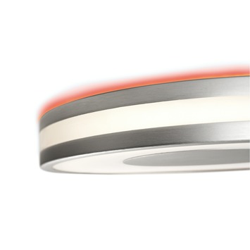 De Philips Ecomoods plafonnière Darina straalt een warm wit energiebesparend licht uit en is voorzien van twee kleurenfilters om de kleur van het licht aan uw stemming aan te passen.
