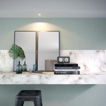 De kantelhoek van de spot is goed instelbaar en blijft stevig op zijn plaats dankzij een kartelrandje. Hierdoor wordt de lichtinval niet ongemerkt gewijzigd door eigenwijze bedrading. Wel steekt de lamp iets verder boven het plafond uit dan bij speciaal ontworpen inbouwlampen, maar dit heeft geen invloed op de functionaliteit.