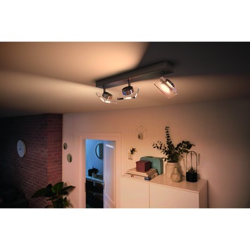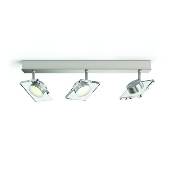 Een energiezuinig alternatief voor de halogeenlamp is de Philips triobalk met 3 geïntegreerde LED lampen. De verlichtingsbron heeft een lichtsterkte van 500 lumen en een maximale wattage van 5.0 watt. Dit is vergelijkbaar met 40 wattage van een ouderwetse gloeilamp. Met een kleurtemperatuur van 2700 kelvin, is deze lamp ideaal om een prettige sfeer te creëren in de woonkamer. Daarnaast kun je deze spotlamp richten op objecten of meubilair waar jij nadruk op wilt leggen. De lamp valt onder energieklasse A+. Dit is een van de meest zuinige energieklasse en bespaar je hierdoor meer op je energiekosten. Deze spotlamp heeft een beschermingswaarde van 20. Dat houdt in dat dit product beschermd is tegen stof. Kort gezegd, de Philips triobalk is een prettige verlichtingsbron voor in elk woonvertrek.
