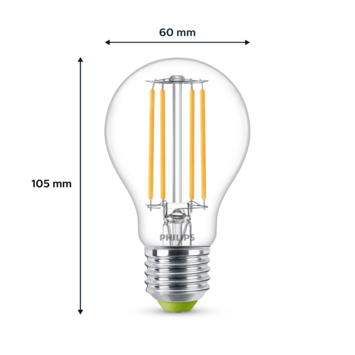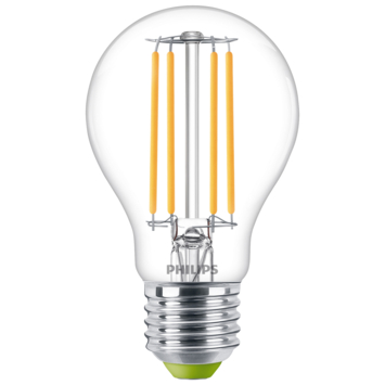 Deze peervormige Philips LED filamentlamp met energielabel A is onze meest energiezuinige lamp ooit. Door 60% minder energieverbruik én een 3,5x langere levensduur dan de gemiddelde LED-lamp bespaar je nóg meer kosten op je energierekening. Omdat deze lamp tot 50 jaar meegaat verspil je ook minder materiaal waardoor je eenvoudig bijdraagt aan een beter klimaat; met LED kan het!
