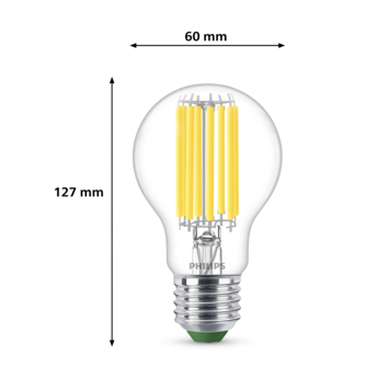Verlicht je huis met onze meest energiezuinige lamp ooit, de peervormige Philips LED filamentlamp die krachtig koelwit licht geeft en energielabel A heeft. Door 50% minder energieverbruik én een 3,5x langere levensduur dan de gemiddelde LED-lamp bespaar je nóg meer kosten op je energierekening. Omdat deze lamp tot 50 jaar meegaat verspil je ook minder materiaal waardoor je eenvoudig bijdraagt aan een beter klimaat; met LED kan het!