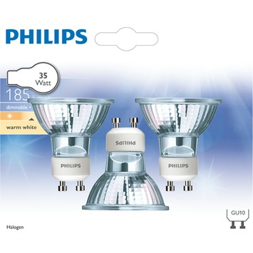De Philips halogeenspot TwistLine GU10 35W is een set van 3 stuks. De spots zijn dimbaar en geven een helderen en natuurlijke verlichting.