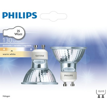 De Philips halogeenspot TwistLine R16 GU10 25W is een set van 2 stuks. De spots zijn dimbaar en geven een helderen en natuurlijke verlichting.