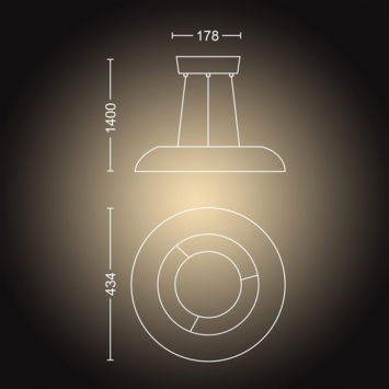 De Philips Hue Amaze White ambiance hanglamp past met zijn unieke zwarte vormgeving in elk interieur. De ingebouwde LED-lamp geeft tot wel 50.000 tinten wit licht. De lamp wordt compleet met een Philips Hue dimmer switch geleverd, waarmee je van lichtrecept kunt wisselen, de lamp in- en uit kunt schakelen en kunt dimmen. Maar deze hanglamp kun je uiteraard ook bedienen via de Hue app. Maak verbinding met de apart verkrijgbare Philips Hue Bridge voor nog meer slimme verlichtingsfuncties, zoals het personaliseren van lichtscènes en het instellen van timers en routines.