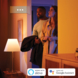 De Philips Hue Buckram enkelvoudige opbouwspot bestaat uit een witte vierkante basisplaat en een witte bolvormige spot. De spot is uitgerust met een White ambiance LED-lamp die je de keuze biedt uit warm tot koelwit licht. Je bent er dus mee voorbereid op elke situatie, van lekker ontspannen tot geconcentreerd lezen. Je kunt de lamp draadloos bedienen met de app. Zo kies je eenvoudig vier verschillende lichtstanden, en kan je de lamp in de app in- en uitschakelen of dimmen. Als je de lamp verbindt met een Philips Hue Bridge krijg je toegang tot uitgebreide functies, zoals timers en routines.
