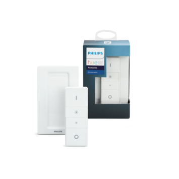 De Philips Hue dim switch is een dimmer op batterijen voor het Philips Hue-systeem. Koppel hem aan uw Philips Hue bridge, configureer hem via de app en kies uw favoriete Philips Hue-scène zonder uw smart device te gebruiken.