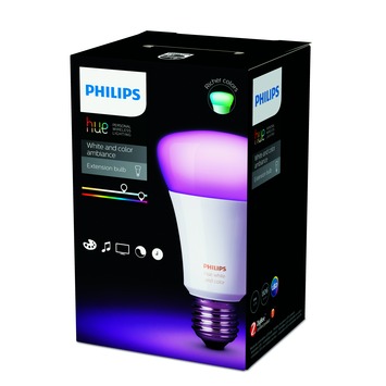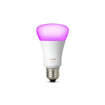Met de E27 10 watt Philips Hue white en color ambiance kunt u eenvoudig wit en gekleurd licht dimmen en op de gewenste kleur instellen. Het licht kan met behulp van de Hue app op een smartphone of tablet bediend worden.