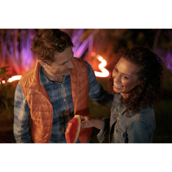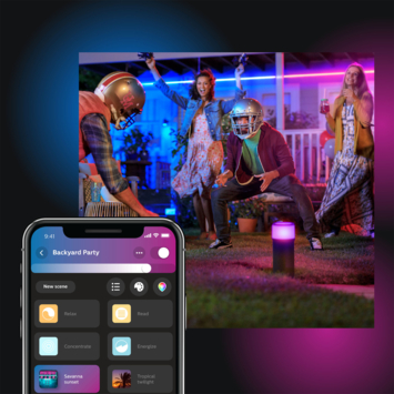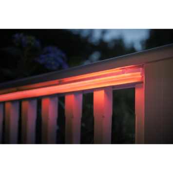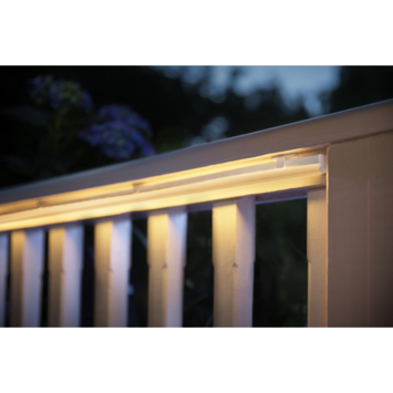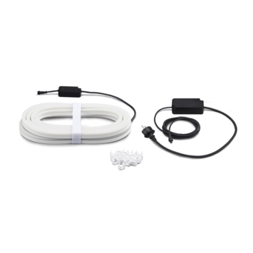 Onbegrensde mogelijkheden. Voor buitengewone ervaringen. Lightstrips zijn binnen in huis natuurlijk leuk, maar ook buiten zijn er volop toepassingsmogelijkheden om sfeer te creëren. Deze volledig flexibele Philips Hue white and color ambiance buitenlichtstrip van twee meter kun je naar eigen wens vormen en buigen. Verlicht een kronkelend tuinpad of bevestig de strip aan een muur of om een paal. Met de meegeleverde klemmen en schroeven kun je de lichtstrip overal installeren voor een zowel in- als direct lichteffect. En als je vervolgens verbinding maakt met een Philips Hue bridge, beschik je via je smartphone of laptop over alle 16 miljoen kleuren en allerlei slimme functies.. Onbegrensde mogelijkheden. Wordt geleverd compleet met voedingsunit en stekker. Deze verpakking wordt geleverd met alle elementen die je nodig hebt om te beginnen, inclusief een lichtsnoer en een buitenstopcontact. Dus alles wat je hoeft te doen, is uitpakken, installeren waar je maar wilt en inschakelen.. Decoreer je tuin. Laat je tuin stralen, net als je huis. Met meer dan 16 miljoen kleuren en 50.000 tinten warm en koelwit licht kun je buiten even mooi decoreren als binnen. Verlicht bijvoorbeeld het looppad of richt een spot op je favoriete plekje van de patio.. Maak verbinding met de Hue Bridge. Maak verbinding met de Hue Bridge als je gebruik wilt maken van slimme bediening en alle slimme functies. Zo kun je lampen bedienen met de Philips Hue app, timers en routines instellen, lampen toevoegen of verwijderen, enzovoort. *Hue Bridge apart verkrijgbaar. Weersbestendige lichtstrip. De buitenlichtstrip is bestand tegen alle weersomstandigheden, van kleine plasjes water tot urenlange hoosbuien.. Flexibele lichtstrip. De buitenlichtstrip biedt volledig flexibele verlichting die je naar eigen wens kunt vormen, buigen en bewerken. Verlicht een kronkelend tuinpad of bevestig de strip tegen een muur of om een paal. Met de meegeleverde klemmen en schroeven kun je de lichtstrip overal installeren.. Mooi gelijkmatig en diffuus. De Philips Hue buitenlichtstrip is voorzien van een speciale diffuse coating die het witte of gekleurde licht verstrooit. Of je de strip nu voor directe of indirecte verlichting gebruikt, je hoeft hem niet te verbergen - puur licht is het enige wat je ziet.