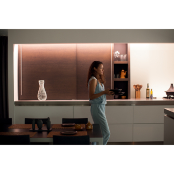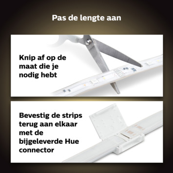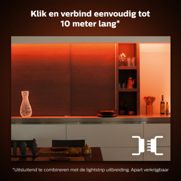 Met de nieuwe Lightstrips van Philips Hue kunt u net dat beetje extra geven aan uw Interieur. 2 meter te kort? Breid de lightstrip uit met de verlengstukken om de gewenste lengte te creëren. De lightstrips zijn ideaal om te gebruiken in uw woonkamer, slaapkamer of keuken en zorgen voor een goede sfeer. Daarnaast kan deze worden uitgebreid tot maximaal 10m. De Lightstrip beschikt over Bluetooth en kan u dus gelijk bedienen! Wilt u meer uit uw Hue Systeem halen, schaf dan de Bridge aan waarmee u bijvoorbeeld persoonlijke lichtscènes en timers kunt instellen. U kunt de strip verlengen, maar ook inkorten! En nieuw bij deze versie is een montageclip waarmee u het afgeknipte stuk eventueel weer terug kan bevestigen en het afgeknipte stuk dus niet verloren gaat! Let op! Dit is de Lightstrip Versie 4. Deze kan niet worden gekoppeld aan Lightstrips van eerder verschenen versies.