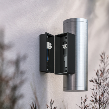Met de Philips Hue Appear muurlamp creëer je de mooiste lichteffecten op de gevel van je huis of tuinmuur. Door de vorm van de lamp schijnen er lichtstralen zowel omhoog als omlaag, in warmwit licht of miljoenen kleuren. Zo heb je niet alleen functioneel licht als je 's avonds thuis komt, maar ook mooi decoratief licht! De installatie is bovendien eenvoudig: sluit de bedrading in huis aan op de muurplaat, schuif de inrichting op zijn plaats om de pinconnectoren in te schakelen, en schroef de lamp in de basisplaat om het vast te zetten op de muur. Wanneer je de Appear verbindt met de Philips Hue Bridge, voeg je de muurlamp toe in je slimme verlichtingssysteem. In de Hue app ontdek je allerlei slimme functies – van bediening als je niet thuis bent tot timers en geofencing-technologie. Dat betekent dat de buitenverlichting automatisch aangaat als je je huis nadert. Met het roestvrijstalen IP44-ontwerp is de Appear gemaakt voor gebruik buitenshuis.