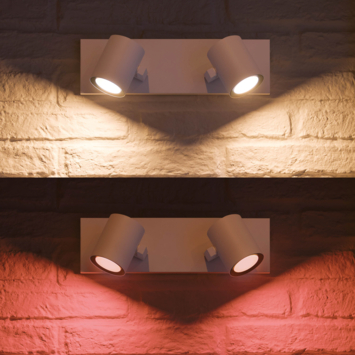 De strakke lijnen van deze witte 2-spots Philips Hue Argenta, op een rechthoekige voet, zijn ideaal voor zowel woon- als slaapkamer. Je kunt de White and color ambiance GU10 LED-lampen dimmen en de lichtkleur ervan veranderen, want ze geven licht in 50.000 wittinten en 16 miljoen kleuren. Je kunt de lamp eenvoudig in- en uitschakelen of moeiteloos dimmen met de Philips Hue app op je smartphone of tablet. Wanneer je verbinding maakt met de Hue Bridge krijg je toegang tot alle beschikbare slimme verlichtingsfuncties, zoals het personaliseren van lichtscènes, het instellen van timers en voeg accessoires toe, zoals bewegingssensoren en slimme draadloze schakelaars.