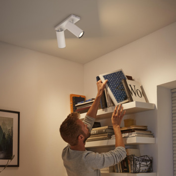 De Philips Buratto is een witte metalen lamp in een moderne stijl. De spotlamp is dan ook zeer geschikt voor de woon- en slaapkamer met een strak interieur. Bij de lamp zit een draadloze dimmer en GU10 Ledlamp. Je kan de dimmer overal plaatsen of juist als afstandsbediening gebruiken. Door te dimmen kan je altijd de juiste sfeer aan een kamer geven, hoe meer je de lamp dimt hoe warmer de sfeer wordt. De spots geven een koel wit licht en je kan switchen tussen een helder licht om te kunnen concentreren of een warmer licht om lekker te kunnen ontspannen. Deze lamp werkt in combinatie met de Hue Bridge. Zo heb je nog veel meer mogelijkheden waarvoor je de lamp kan gebruiken. Kortom, met de Philips Opbouwspot Hue Buratto LED Wit met Dimmer 2 x 5,5W heb je altijd de juiste belichting voor het juiste moment.