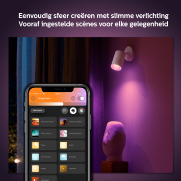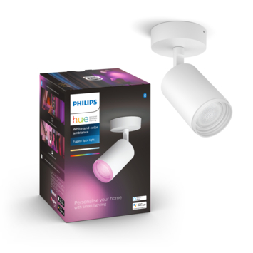De Philips Hue LED opbouwspot uit de serie Fugato, is een energiezuinig alternatief voor de halogeenspot en heeft een lange levensduur. De opbouwspot zelf is wit gekleurd en is gemaakt van metaal. De verlichtingsbron heeft een lichtopbrengst van 350 lumen en een maximale wattage van 6 watt. Dit product is ideaal om een aangename sfeer te creëren in het woonvertrek. Dit kun je doen door de lichtkleur in te stellen met je telefoon of tablet. De spots zijn richtbaar en kun je deze richten op objecten of meubilair waar jij nadruk op wilt leggen. De beschermingswaarde van dit product is IP20. Dat houdt in dat het product stofdicht is. Kort gezegd, de Philips Hue opbouwspot is een prettige verlichtingsbron voor in huis.