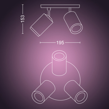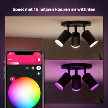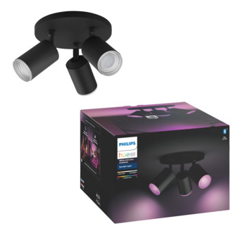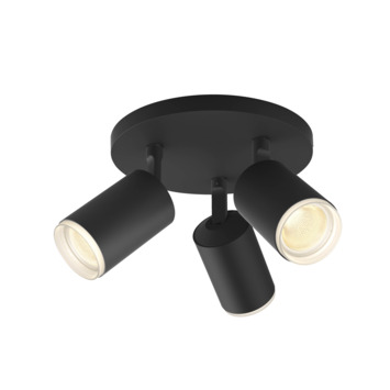 De 3-lichts Philips Hue LED opbouwspot uit de serie Fugato, is een energiezuinig alternatief voor de halogeenspot en heeft een lange levensduur. De opbouwspots zelf zijn zwart gekleurd en zijn gemaakt van metaal. De verlichtingsbron heeft een lichtopbrengst van 350 lumen en een maximale wattage van 6 watt. Dit product is ideaal om een aangename sfeer te creëren in het woonvertrek. Dit kun je doen door de lichtkleur in te stellen met je telefoon of tablet. De spots zijn richtbaar en kun je deze richten op objecten of meubilair waar jij nadruk op wilt leggen. De beschermingswaarde van dit product is IP20. Dat houdt in dat het product stofdicht is. Kort gezegd, de Philips Hue opbouwspot is een prettige verlichtingsbron voor in huis.