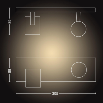 Deze zwarte Philips Hue Runner 2-spots opbouwspot bestaat uit een rechthoekige basis waarop twee richtbare zwarte spots zijn gemonteerd. Beide spots zijn voorzien van White ambiance LED-lampen, die je heel eenvoudig de keuze bieden uit warm tot koelwit licht. Dankzij de 50.000 wittinten heb je altijd het juiste licht om te ontspannen, te concentreren, te lezen of energie op te doen. Gebruik de bijgeleverde slimme schakelaar om je lampen aan en uit te doen, te dimmen of feller te zetten. Je kunt de lamp ook eenvoudig in- en uitschakelen of moeiteloos dimmen met de Philips Hue app op je smartphone of tablet. Wanneer je verbinding maakt met de Hue Bridge krijg je toegang tot alle beschikbare slimme verlichtingsfuncties, zoals het personaliseren van lichtscènes, het instellen van timers en voeg accessoires toe, zoals bewegingssensoren en slimme draadloze schakelaars.