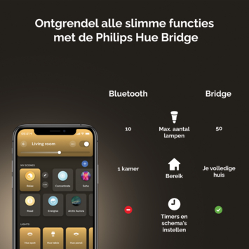 De witte Philips Hue Aurelle plafondlamp heeft een zeer compacte en slanke vierkante vorm. Deze leent zich voor allerlei gebruikssituaties en versterkt zelfs het ruimtelijke gevoel in je woning. De ingebouwde White ambiance LED-lamp levert warm tot koelwit licht, dat je energie geeft en je helpt concentreren, lezen en ontspannen. De plafondlamp is bovendien eenvoudig te bedienen via de Hue app. Mobiel niet bij de hand? Gebruik dan de meegeleverde Philips Hue dimmer switch. Je kunt makkelijk wisselen van lichtstand, de lamp dimmen en in- en uitschakelen, en tot wel 10 lampen in één kamer draadloos bedienen. Meer slimme functies zoals timers en diverse routines krijg je als je de lamp verbindt met de apart verkrijgbare Philips Hue Bridge.