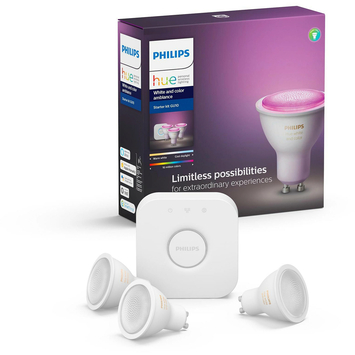 Philips Hue starterkit - wit en gekleurd licht 6W - 3 lampen met dimmer switch - GU10152.00