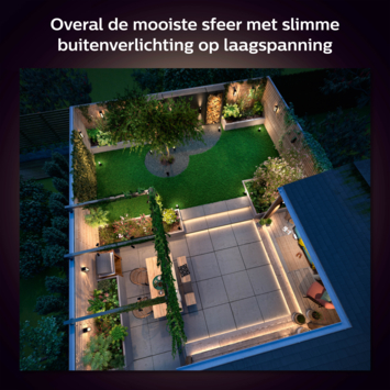 Breid eenvoudig je Philips Hue buitenverlichting uit. Met dit T-verlengstuk verbind je jouw Philips Hue verlichting op laagspanning nog flexibeler met elkaar. Vergroot de afstand tussen de voeding en je eerste lichtpunt, of de afstand tussen je buitenlampen onderling. Gebruikt het T-verlengstuk in combinatie met de Philips Hue verlengkabel. Het Philips Hue T-verlengstuk is bestand tegen stof en water (IP67-norm). De totale maximale systeemlengte per voeding is 35 meter.