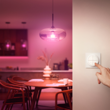 Maak je huis nu nog slimmer en bedien tot wel drie kamers of zones met elke afzonderlijke knop van deze stijlvolle witte Philips Hue Tap dial switch. Pas eenvoudig de helderheid van je Hue lampen aan met een simpele draai aan de knop. Bevestig de Tap dial switch aan je muur, plaats hem op een magnetisch oppervlak of gebruik hem als afstandsbediening. Deze draadloze installatie bezorgt je een snelle toegang tot alle lichtscènes.