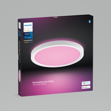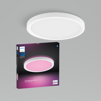 Door zijn slanke en strakke ontwerp is deze witte, ronde Hue Tento plafondlamp Ø30cm ideaal voor ruimtes zoals de woonkamer, keuken of slaapkamer. Met de White and color ambiance lamp heb je keuze uit 16 miljoen prachtige kleuren en 50.000 wittinten. Zo heb je het juiste licht voor elk moment. Je kunt de lamp eenvoudig in- en uitschakelen of moeiteloos dimmen met de Philips Hue app op je smartphone of tablet. Wanneer je verbinding maakt met de Hue Bridge krijg je toegang tot alle beschikbare slimme verlichtingsfuncties, zoals het personaliseren van lichtscènes, het instellen van timers en voeg accessoires toe, zoals bewegingssensoren en slimme draadloze schakelaars.