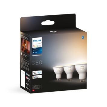 Verlicht je woning met warmwit tot koel daglicht met deze drie Philips Hue White ambiance LED-spots met GU10-fitting. Je hebt altijd het juiste licht dankzij de 50.000 wittinten, die je helpen ontspannen, concentreren, lezen of energie op te doen. Met de Philips Hue app op je smartphone of tablet kun je de slimme lamp eenvoudig via Bluetooth bedienen. Wil je nog meer slimme verlichtingsfuncties? Verbind dan de lamp met een Philips Hue Bridge, en personaliseer lichtscènes, stel timers in en nog veel meer.