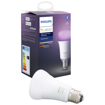 Geef elke kamer kleur met een slimme Philips Hue white and color ambiance LED-lamp met E27-fitting voor warm- tot koelwit licht en tot wel 16 miljoen kleuren. Gebruik Bluetooth om de verlichting direct te bedienen of maak verbinding met de Hue bridge voor toegang tot alle beschikbare slimme verlichtingsfuncties, zoals het personaliseren van lichtscènes, het instellen van timers en nog veel meer.