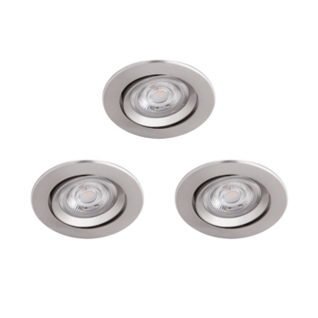 De drie nikkelkleurige Philips Sparkle inbouwspotjes hebben een moderne uitstraling. Het gelijkmatige, warmwitte LED-licht van de verstelbare spotjes is zeer krachtig en dimbaar met de juiste dimmers. Ze kunnen bovendien door de beperkte hoogte in bijna elk verlaagd plafond worden gemonteerd.