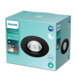 Deze zwarte Philips Dive inbouwspot voor de badkamer heeft een moderne uitstraling. Het gelijkmatige, warmwitte LED-licht is zeer krachtig, maar kan met een geschikte dimmer worden gedimd: ideaal als je even van een heerlijk bad wilt genieten. Door de beperkte montagehoogte kunnen de spotjes, met IP20-classificatie in bijna elk verlaagd plafond worden weggewerkt.