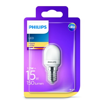De Philips koelkastlamp LED E14 15 watt mat is een LED-lamp die vanwege het extreem kleine ontwerp ideaal is voor koelkasten en afzuigkappen met een E14 fitting. Dankzij het gebruik van LED-technologie heeft deze lamp, ondanks het lage energieverbruik, een vermogen van 1,7 watt en een lichtopbrengst van 140 lumen. De warm witte kleur zorgt voor aangenaam warm en natuurlijk licht. Met een levensduur van 15.000 uur gaat deze lamp erg lang mee. Kortom, de Philips koelkastlamp is een energiezuinige verlichtingsbron.