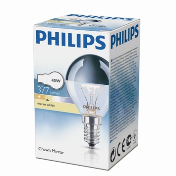 De Philips kopspiegellamp E14 40W helder is een heldere halogeenlamp voor accentverlichting. Dankzij de geïntegreerde zilveren kopspiegel wordt een omgekeerde lichtbundel gecreëerd wat zorgt voor mooie lichteffecten. Dit indirecte licht is tevens prettig voor uw ogen door het ontbreken van een zichtbare gloeidraad. Deze Philips kopspiegellamp is door het indirecte licht echter niet bedoeld voor algemene huiskamerverlichting. Doordat de lamp dimbaar is, kunt u de lichtsterkte van deze lamp gemakkelijk variëren. De Philips kopspiegellamp E14 40W helder is een reflectorlamp die garant staat voor bijzondere accentverlichting.
