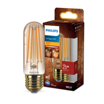 Met deze Philips LED filamentlamp zorg je voor extra sfeer in huis. Ze zorgen voor een stijlvol lichtelement en geven sfeervol warmwit licht. Deze lamp heeft een gouden coating en in de lamp zie je een rechte lichtstaaf. Met EyeComfort, voor licht dat aangenaam is voor jouw ogen. De lamp heeft een E27-fitting, en past dus in de meeste lampen met grote fitting.