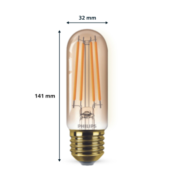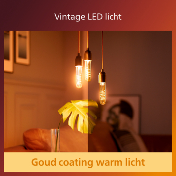 Met deze Philips LED filamentlamp zorg je voor extra sfeer in huis. Ze zorgen voor een stijlvol lichtelement en geven sfeervol warmwit licht. Deze lamp heeft een gouden coating en in de lamp zie je een rechte lichtstaaf. Met EyeComfort, voor licht dat aangenaam is voor jouw ogen. De lamp heeft een E27-fitting, en past dus in de meeste lampen met grote fitting.
