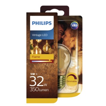 Maak kennis met de nieuwe Vintage Philips LED-lampenfamilie, een collectie die doet denken aan de vertrojede gloeilampen. Deze LED kooldraadlampen met E27-fitting vallen op in een stijlvol lichtelement en geven je interieur een gevoel van nostalgie. Ze verbruiken ongeveer 80% minder energie dan traditionele lampen dankzij de niejeste energiezuinige LED-technologie en ze gaan tien keer langer mee.