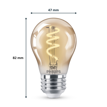 Met deze gouden Philips LED filamentlamp zorg je voor extra sfeer in huis. Ze zorgen voor een stijlvol lichtelement en geven sfeervol warmwit licht. Deze lamp heeft een gouden coating en in de lamp zie je een dimbare lichtspiraal, wat doet denken aan gloeilampen van vroeger. Met EyeComfort, voor licht dat aangenaam is voor jouw ogen. De lamp heeft een E27-fitting, en past dus in de meeste lampen met grote fitting.