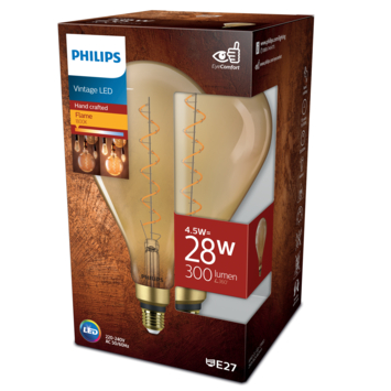 De Philips Vintage Classic Giant LED lamp familie is een collectie die herinnert aan bekende gloeilampen uit het recente verleden. Beschikbaar in diverse vormen in groot formaat, waaronder deze goude E27 25W lamp. Deze lamp valt op door het nostalgische karakter.