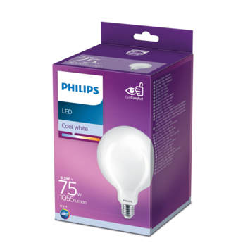 Vervang uw oude lamp met een nieuwe energiezuinige Philips LED-lamp, met koelwit licht. Deze globelamp verbruikt circa 80% minder energie dan traditionele lampen dankzij de nieuwste energiezuinige LED-technologie en ze gaan tien keer langer mee. Met EyeComfort, voor licht dat aangenaam is voor uw ogen. Deze lamp heeft een E27-fitting, en past dus in de meeste lampen met grote fitting.