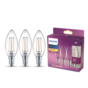 Philips LED kaars E14 1,9W 3 stuks filament helder niet dimbaar