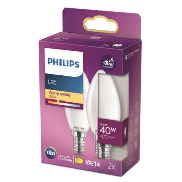 Vervang 2 oude kaarslampen door deze nieuwe energiezuinige Philips LED-lampen, met warmwit licht, en bespaar tot €30 op energiekosten per lamp per jaar. Deze standaardlampen verbruiken tot 90% minder energie dan gloei- en halogeenlampen dankzij de nieuwste energiezuinige LED-technologie. Daarnaast gaan ze gaan tien keer langer mee. Met EyeComfort, voor licht dat aangenaam is voor jouw ogen. Deze lampen hebben een E14-fitting en zijn vaak geschikt voor tafellampen of lusters.