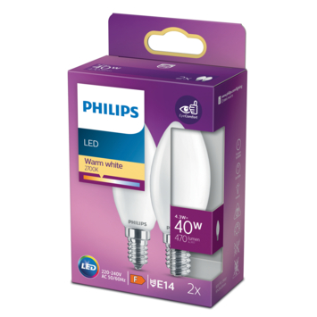 Philips LED kaars E14 40W 2 stuks mat niet dimbaar