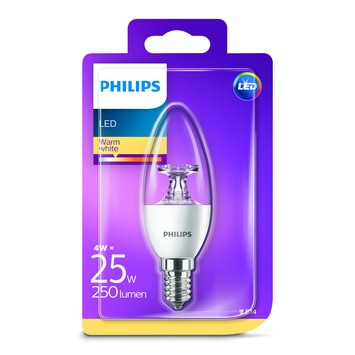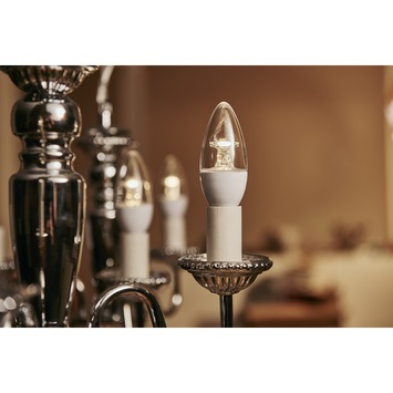 De Philips LED-kaarslamp E14 4W helder warm wit is een kaarsvormige LED-lamp die geschikt is voor een E14 fitting. De lamp geeft een sprankelend lichteffect. Deze lamp is zowel aan als uit schitterend en daarom ook geschikt voor kroonluchters met E14 fitting. Dankzij het gebruik van LED-technologie heeft deze lamp een vermogen van 4 watt en een laag energieverbruik. Kortom, de Philips LED-kaarslamp is een prettige verlichtingsbron.