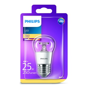 De Philips LED-kogellamp E27 4W helder warm wit is een kogelvormige lamp geschikt voor een E27 fitting. De lamp heeft innovatief design en geeft een sprankelend lichteffect. De lamp heeft een vermogen van 4 watt en is energiezuinig. Ook is de lamp direct na inschakelen op volle sterkte. Kortom, de Philips LED-kogellamp is een prettige verlichtingsbron.